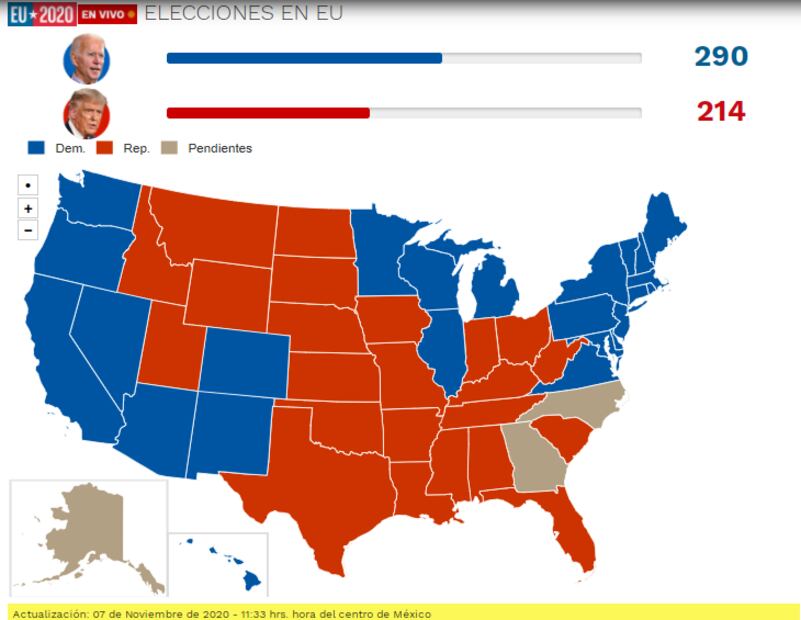 Joe Biden será el nuevo presidente de Estados Unidos y es evidente que algunos de los estados que habían apoyado a Trump, esta vez se inclinaron al lado demócrata otorgándole ventaja a Biden.
