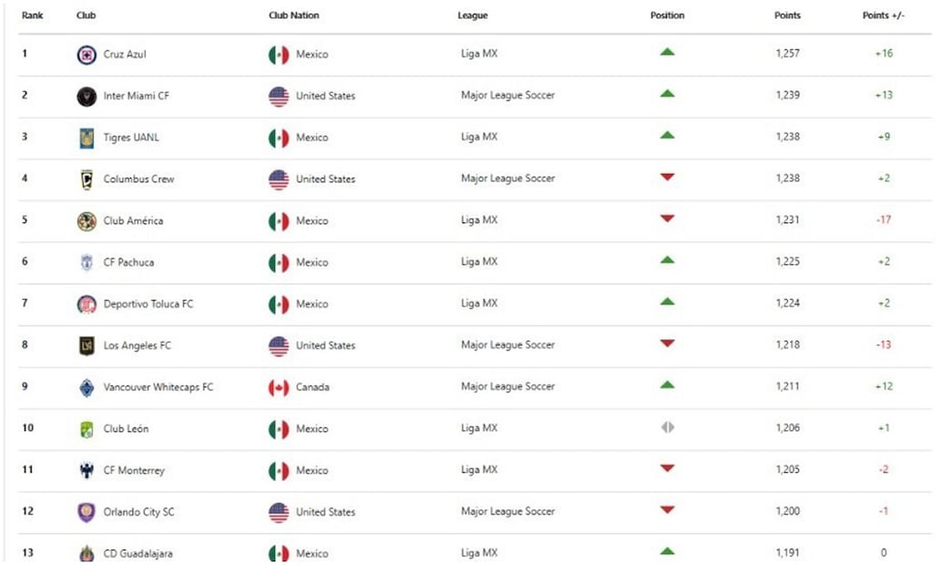 En la última actualización del Ranking de la Concacaf, Cruz Azul apareció en la cima de la tabla. La Máquina dejó en el camino a América, a Tigres y al Inter de Miami.