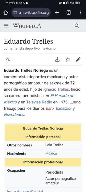 Entre las modificaciones más notables en su biografía, se ha destacado que Trelles es descrito como un 'comentarista deportivo mexicano y actor amateur del cine para adultos', con una edad de 72 años y una supuesta relación laboral con la empresa 'Sexmex' dedicada a la industria para adultos. Estas alteraciones no solo han sido una fuente de humor para algunos.
