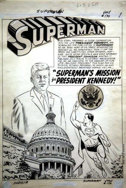 Especulaciones ¿Dónde? El asesinato del trigésimo quinto presidente de los Estados Unidos es uno de los temas que más las generan, y curiosamente, también tiene una relación con el superhéroe que ha hecho a muchos pensar que su asesinato fue parte de la maldición; y es que en 1963, el gobierno y DC Comics llegaron al acuerdo de que Kennedy apareciera junto a Superman en un impreso el cual, fue publicado en abril de 1964, solo cinco meses después del asesinato del mandatario.