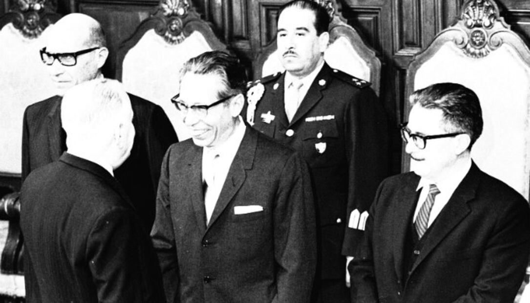 Gustavo Diaz Ordaz en Palacio Nacional es felicitado por el año nuevo en enero de 1968. (Foto: El Universal)